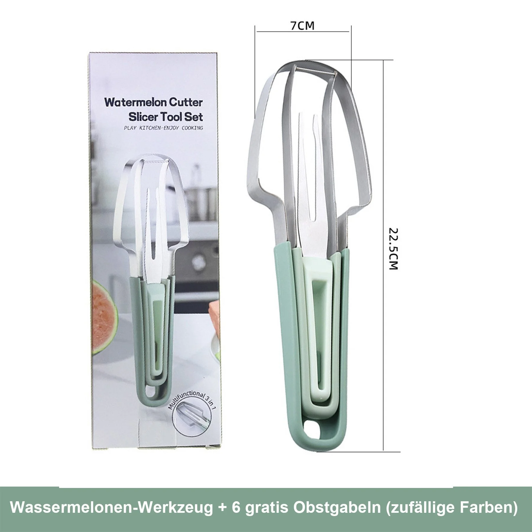 Produktinformationen "3-in-1 Obst- & Melonenschneider aus Edelstahl – Praktisches Schneidwerkzeug für Zuhause & unterwegs"