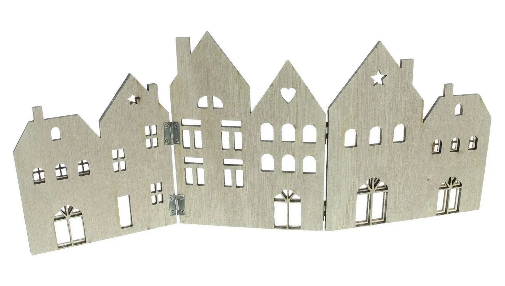 | Im Paket | 1 × Deko-Häuserfront aus Holz (aufklappbar) |