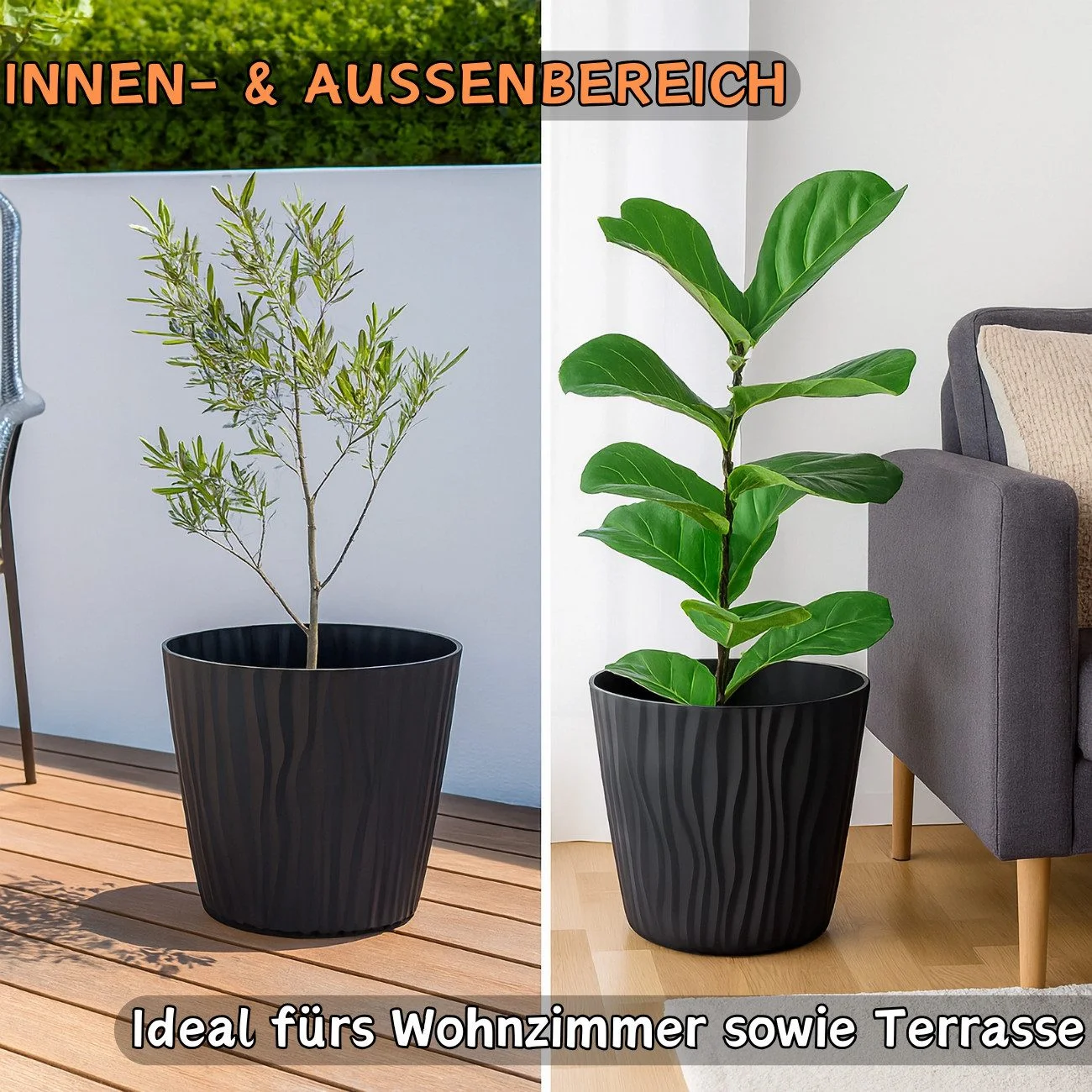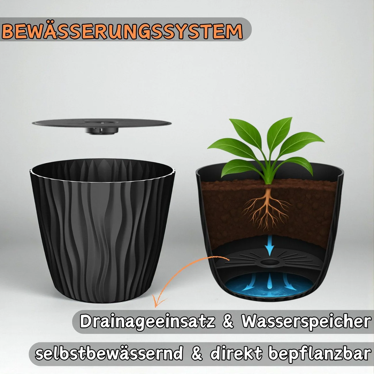 Der stilvolle ENGELLAND Pflanztopf kombiniert moderne 3D-Wellenoptik mit einem intelligenten Bewässerungs- und Drainagesystem. Ideal für Wohnzimmer, Balkon, Terrasse oder Garten – robust, pflegeleicht und bereit zur direkten Bepflanzung.