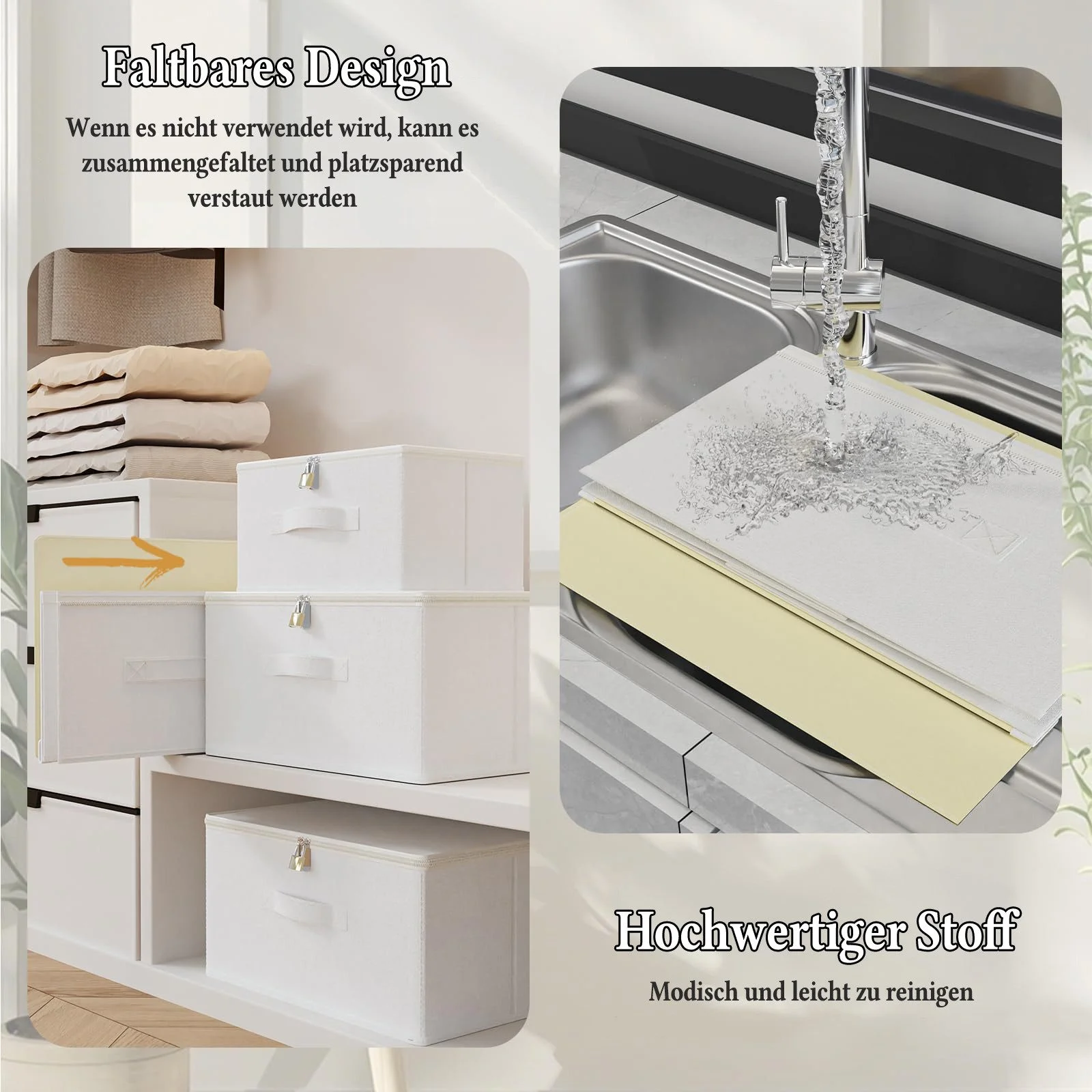 | Produktart | Faltbare Stoff-Aufbewahrungsbox mit Deckel |