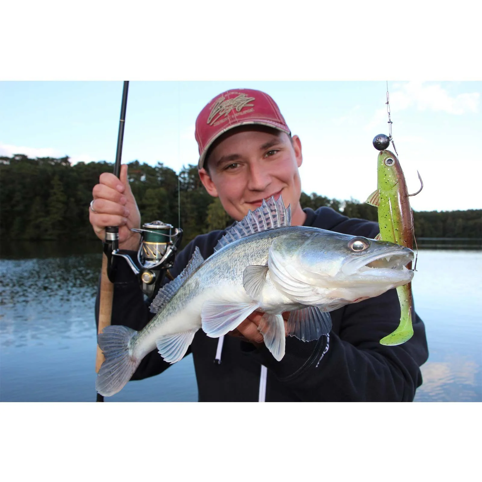 Schon bei geringster Einholgeschwindigkeit beginnt der ausgeprägte Paddelschwanz kraftvolle Vibrationen zu erzeugen. Ob klassisch gejiggt, im Stop-and-Go geführt oder einfach eingekurbelt – dieser Softbait liefert ein aktives, verführerisches Laufverhalten und ist besonders effektiv auf Zander und größere Barsche.