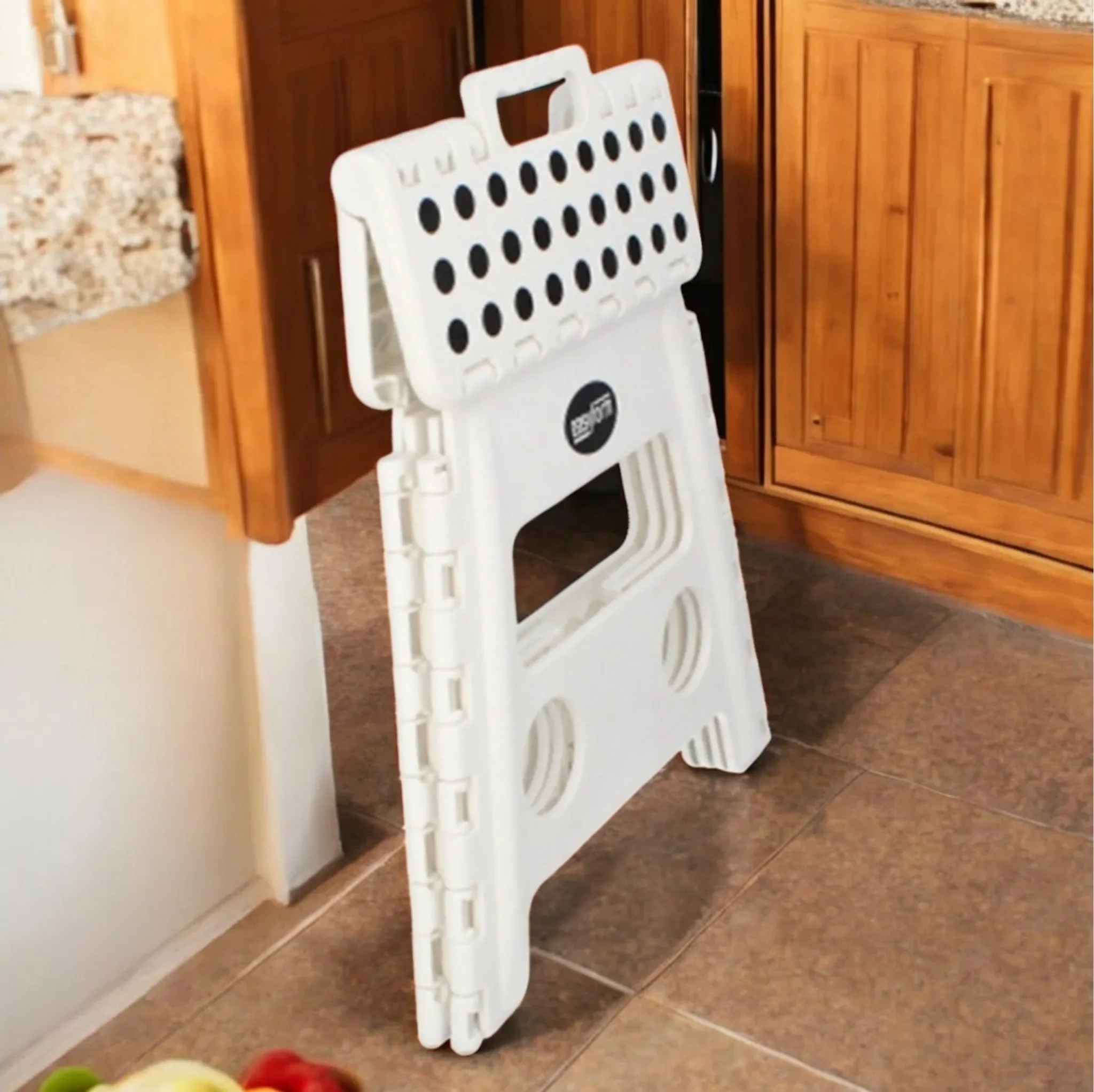 Der faltbare Klapphocker ist die ideale Unterstützung im Alltag: Ob in der Küche, im Bad, im Kinderzimmer oder im Wohnzimmer – mit seiner Höhe von 32 cm erleichtert er das Erreichen höherer Regale oder Schränke. Die rutschhemmende Oberfläche sowie robuste Anti-Rutsch-Füße bieten maximale Stabilität und Sicherheit auf jedem Untergrund.