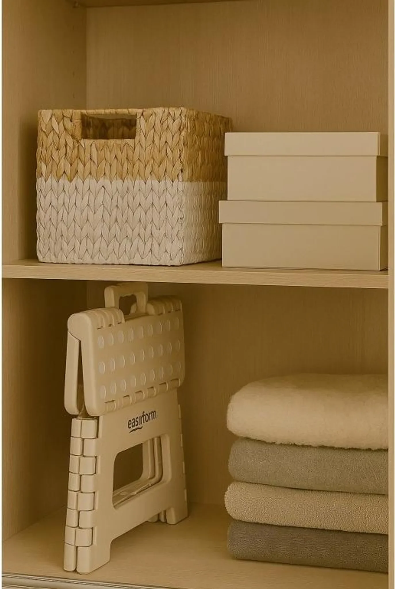 Der robuste Klapphocker mit Anti-Rutsch-Oberfläche ist eine praktische Unterstützung im Alltag – ideal, um sicher höhere Regale oder Schränke zu erreichen. Dank rutschhemmender Punkte und stabiler Standfüße bietet er zuverlässige Sicherheit auf verschiedenen Bodenarten, egal ob in der Küche, im Bad oder im Kinderzimmer.