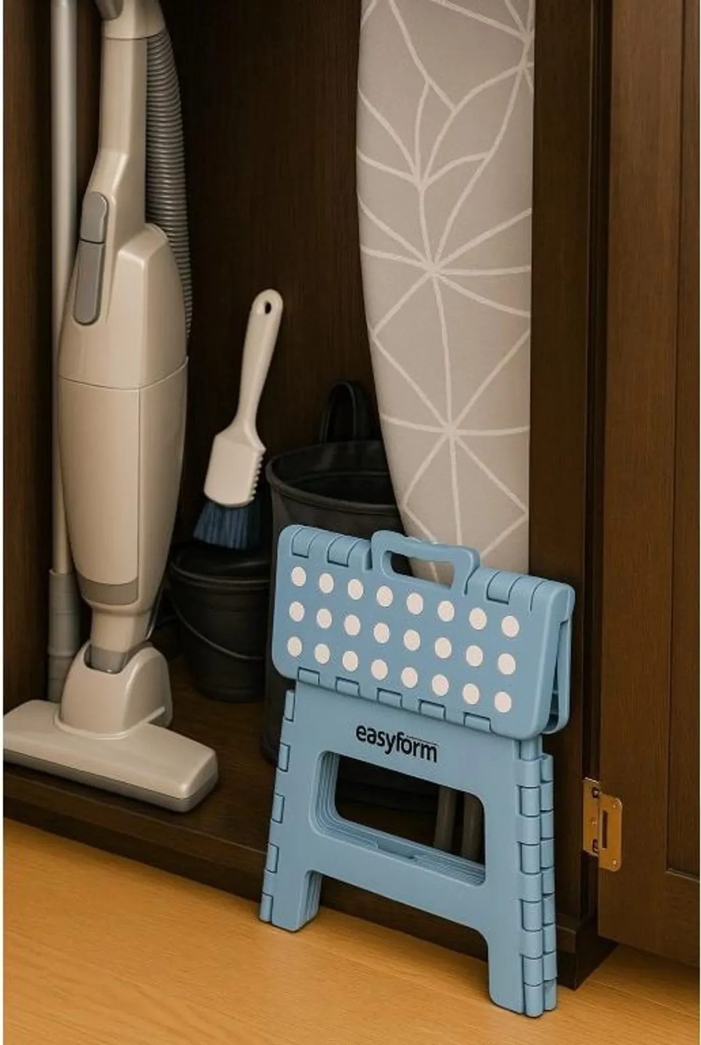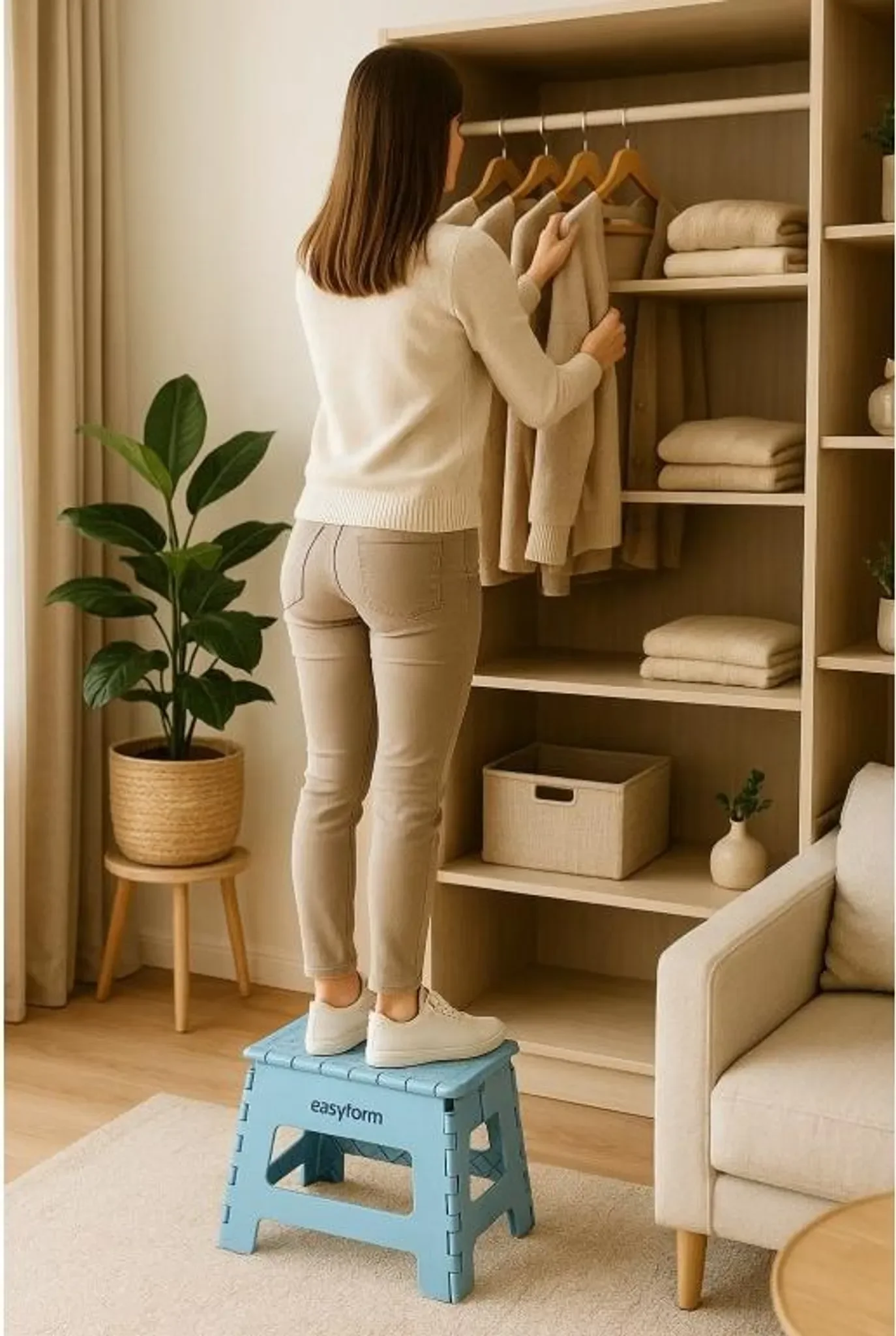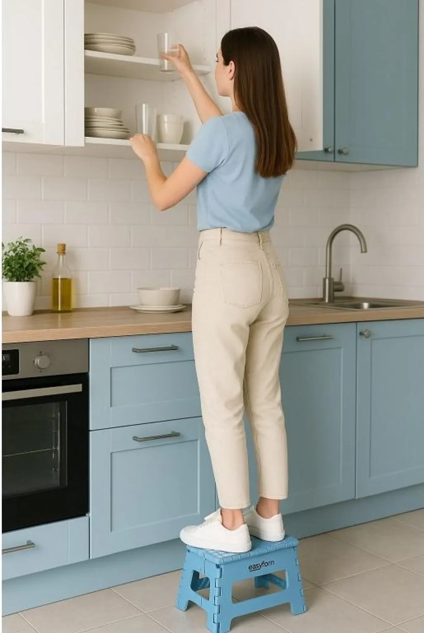 Dieser stabile Klapphocker mit Anti-Rutsch-Oberfläche ist die ideale Lösung, um sicher höhere Ablagen zu erreichen – perfekt für Küche, Bad, Wohnzimmer oder Kinderzimmer. Dank seines praktischen Faltmechanismus lässt er sich platzsparend verstauen und durch den integrierten Griff leicht transportieren.