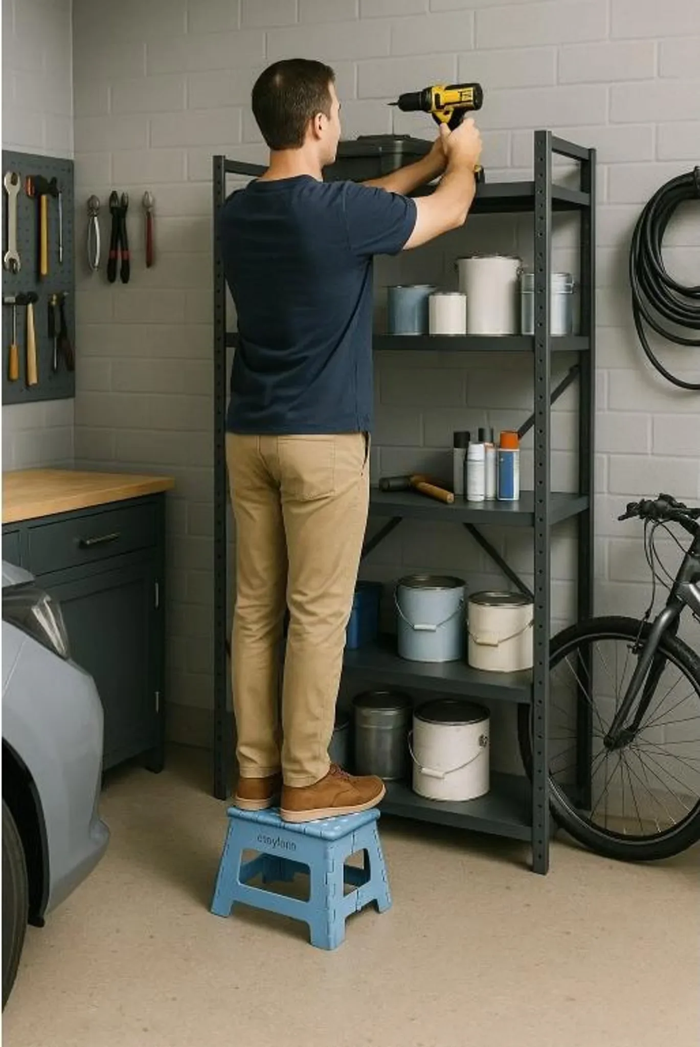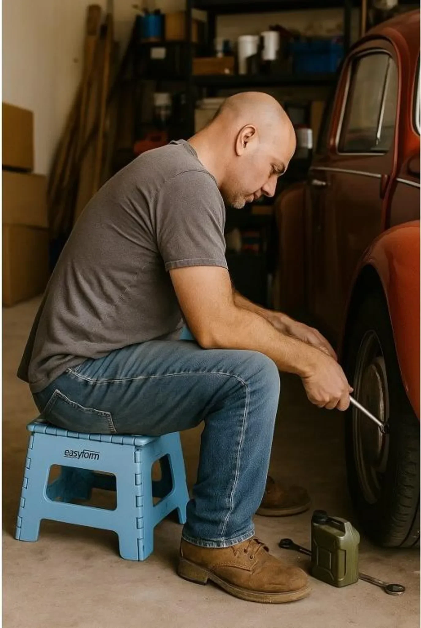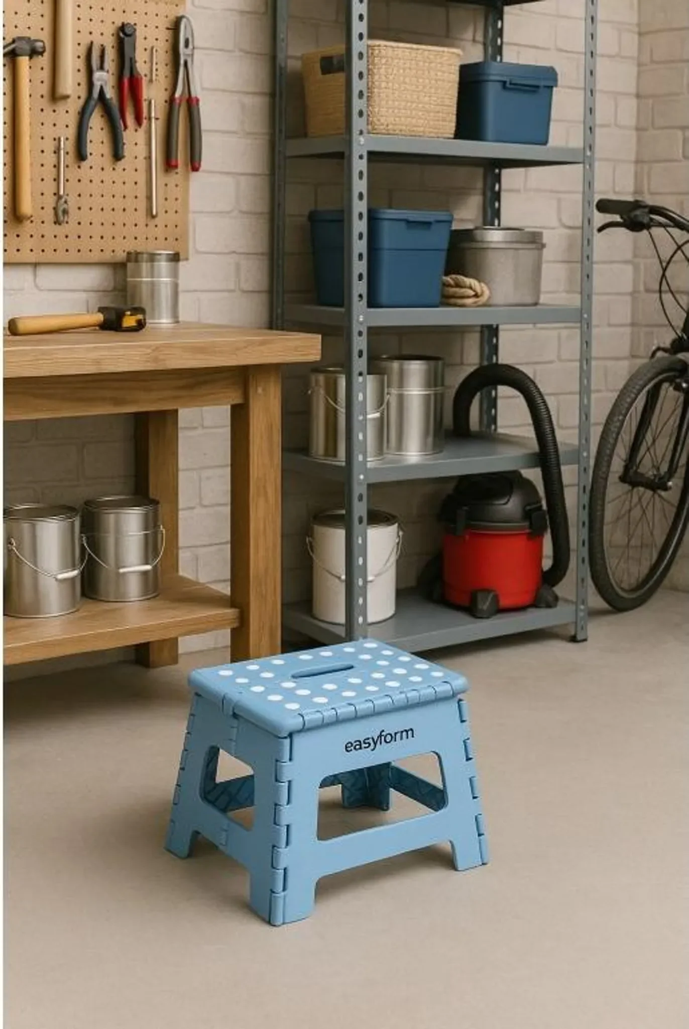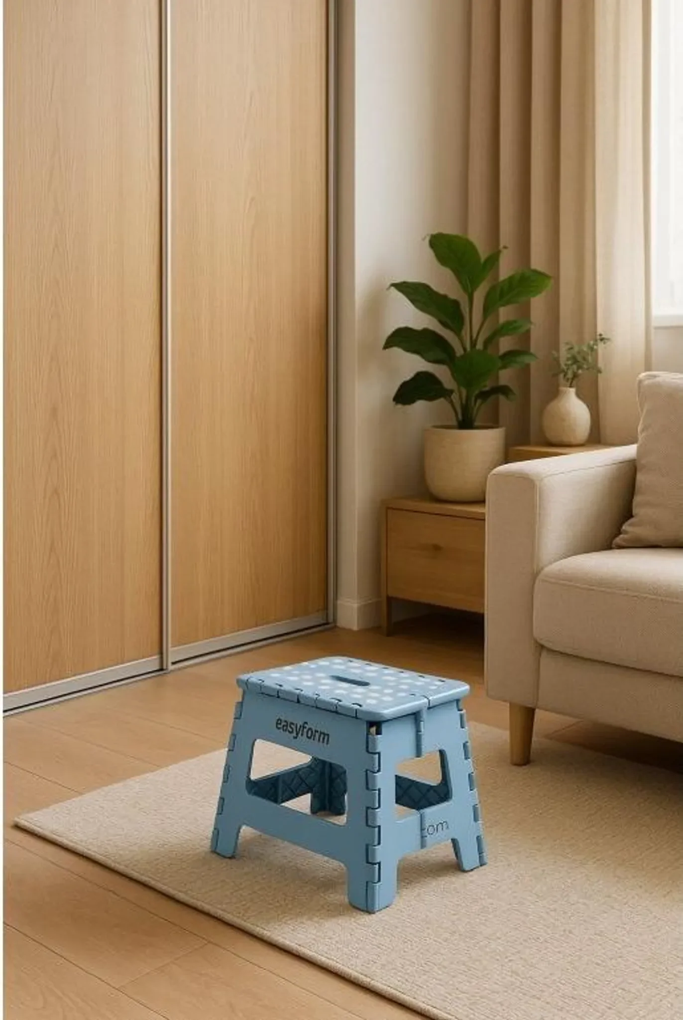 Dieser stabile Klapphocker mit Anti-Rutsch-Oberfläche ist die ideale Lösung, um sicher höhere Ablagen zu erreichen – perfekt für Küche, Bad, Wohnzimmer oder Kinderzimmer. Dank seines praktischen Faltmechanismus lässt er sich platzsparend verstauen und durch den integrierten Griff leicht transportieren.