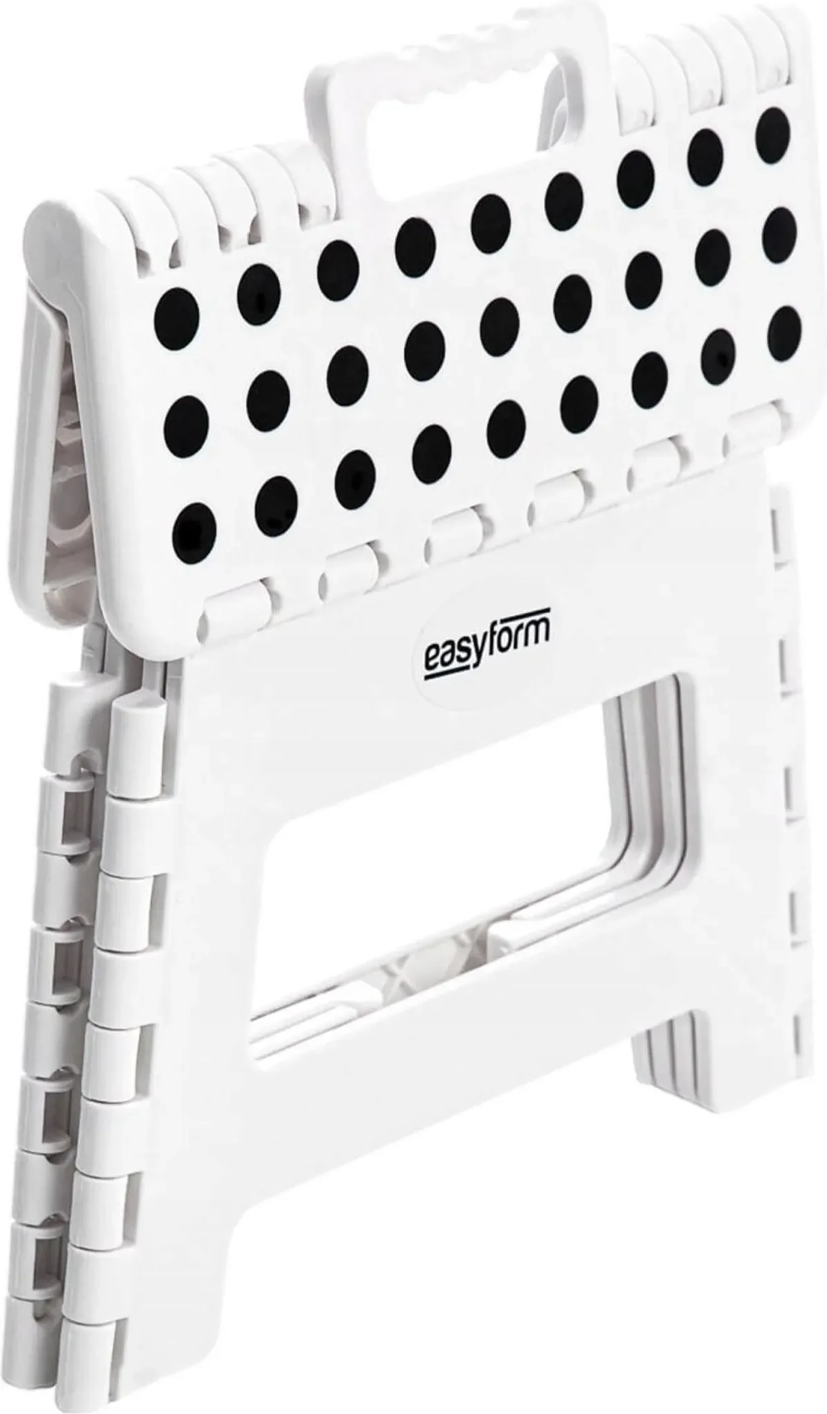 Das faltbare Design ermöglicht platzsparendes Verstauen, während der integrierte Tragegriff den komfortablen Transport erleichtert. Mit einer Tragkraft von bis zu 150 kg eignet sich der Hocker sowohl für Kinder als auch Erwachsene.