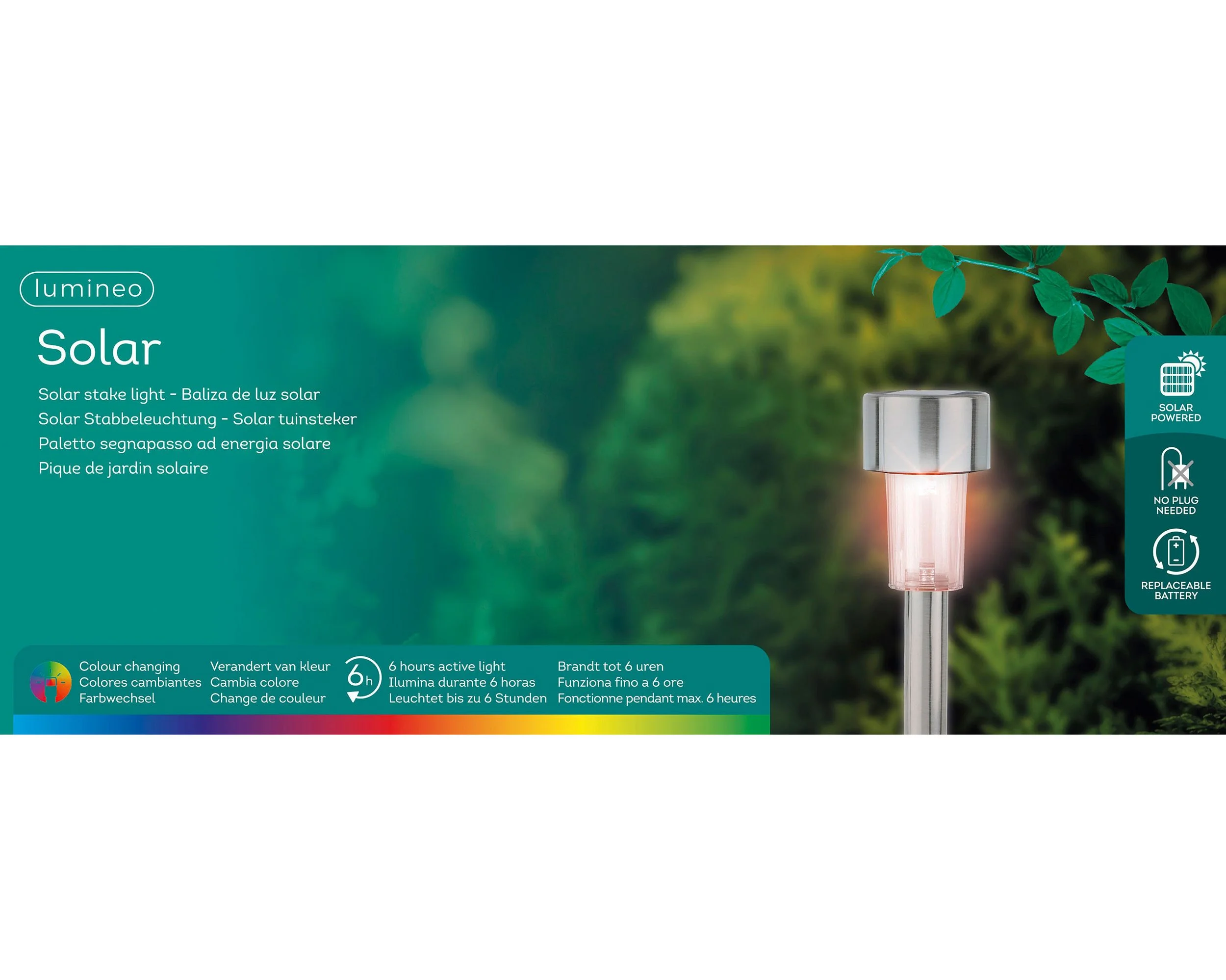 Produktinformationen "LUMINEO LED-Solarleuchte – Edelstahl, 24 cm, Farbwechsel & warmweiß"