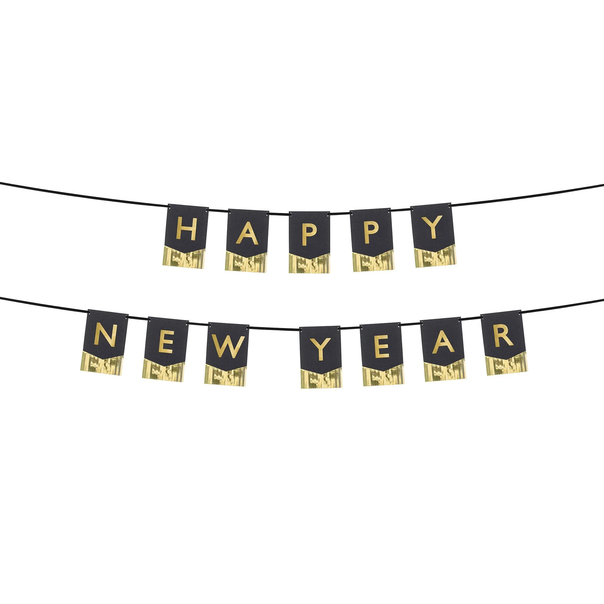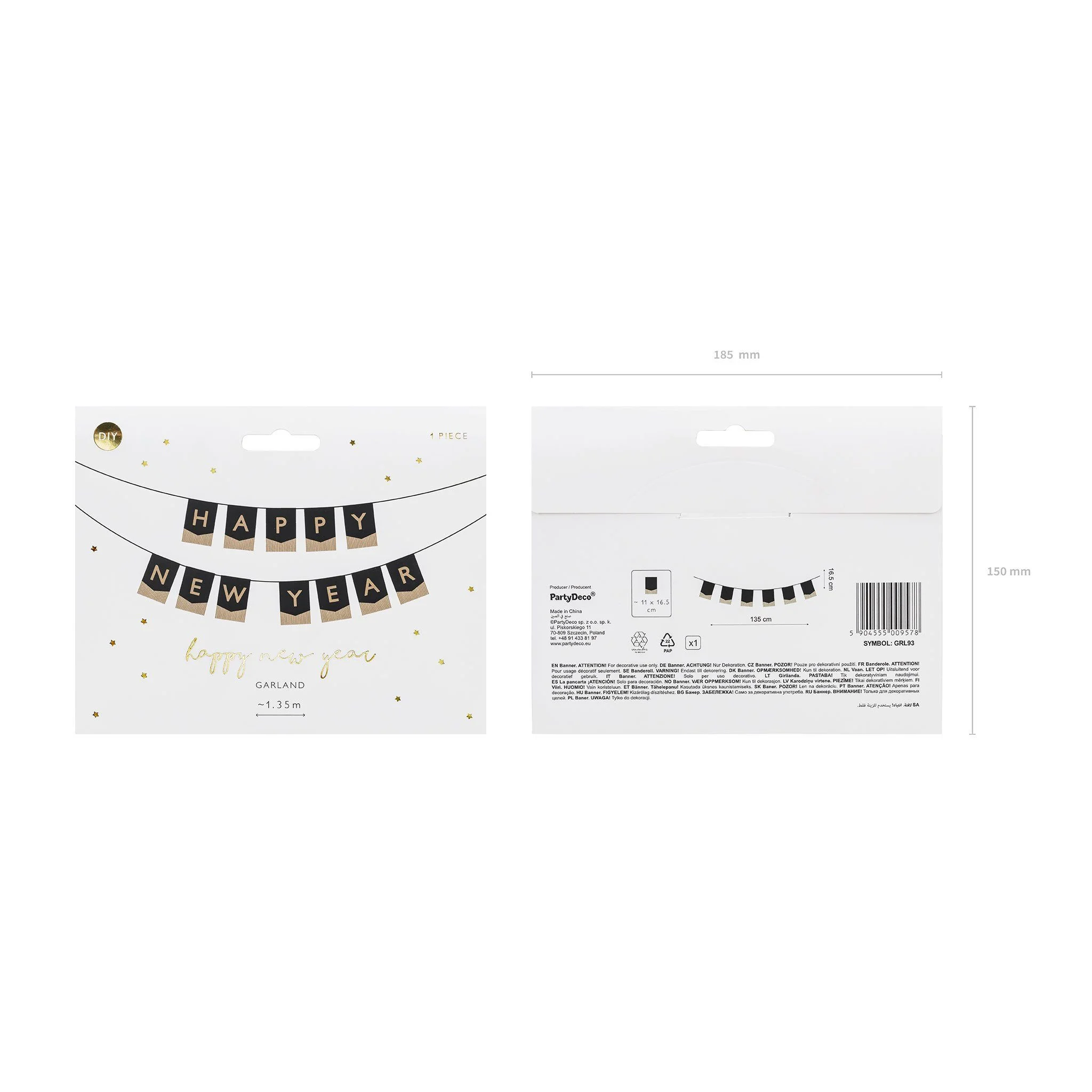 Produktinformationen "PARTYDECO – Girlande Happy New Year Schwarz/Gold"