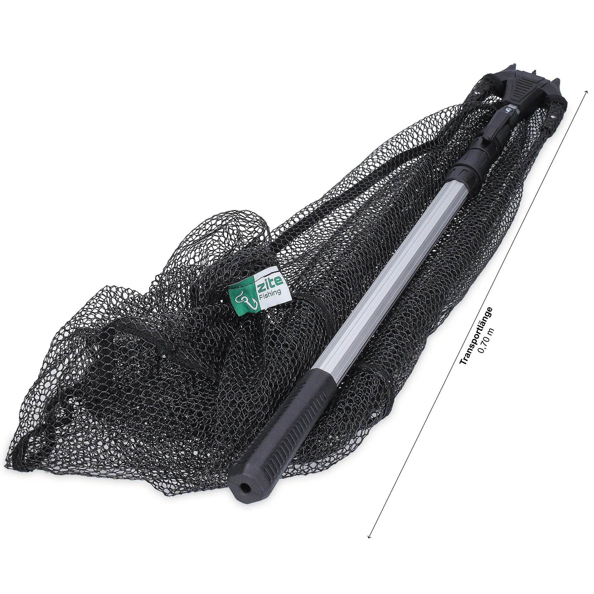 Produktinformationen "Zite Angelkescher – Gummiert & teleskopierbar, 160 cm mit Maßband-Tasche"